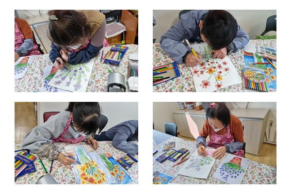 재능키움활동으로는 수채화색연필과 싸인펜을 활용하여 각자 그리고 싶은 꽃 그리기 활동을 하였습니다.