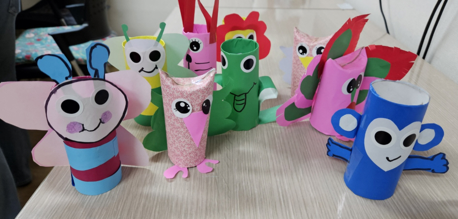 재능키움활동으로 휴지심을 활용하여 다양한 동물을 만들고 역할극 놀이를 하였습니다.