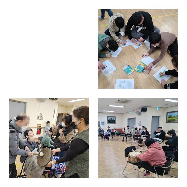 전통놀이로 어깨동무 노래, 징, 자진모리장단 배우기 활동을 하였습니다.