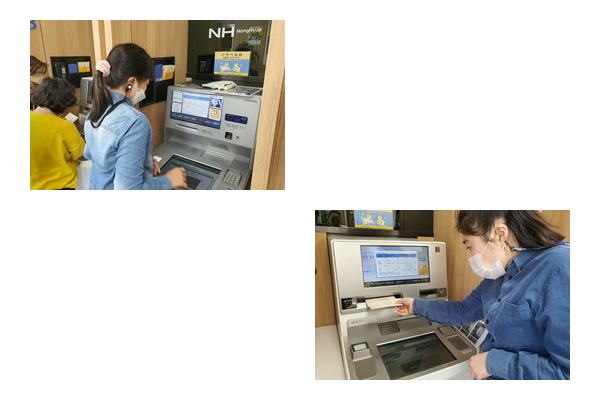자립체험활동으로 은행 ATM 으로 통장에 입금하기를 진행하였습니다.