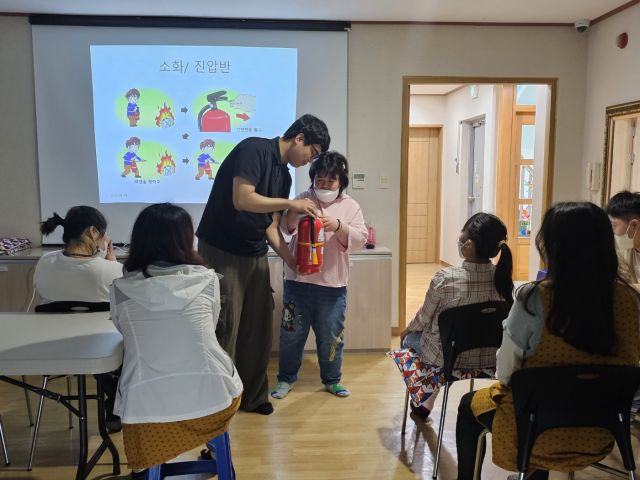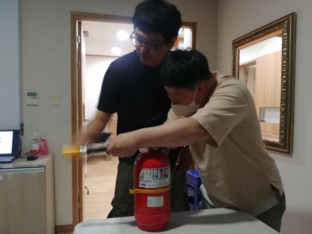 소방교육으로 화재 발생 시 대응방법과 비상대피훈련 진행하였습니다.