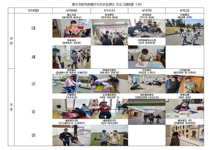 제주가톨릭장애인주간보호센터 주간일정표 6월 1주001.jpg (73247 bytes)