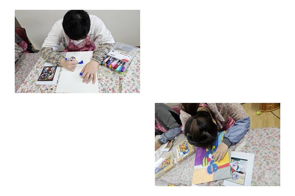 재능키움활동으로 입체파 피카소 작품에 대해 감상하고 피카소처럼 그림을 그렸습니다.