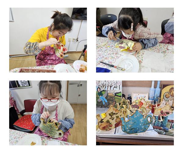 생활공예로 냅킨을 활용한 주전자 꽂이를 만들었습니다.
