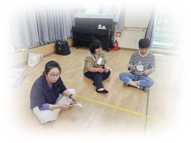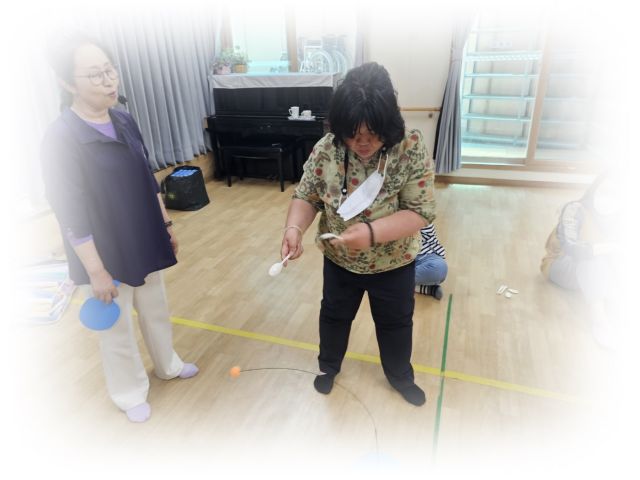 인지활동으로 라인댄스, 숟가락 난타, 탁구를 하였습니다.