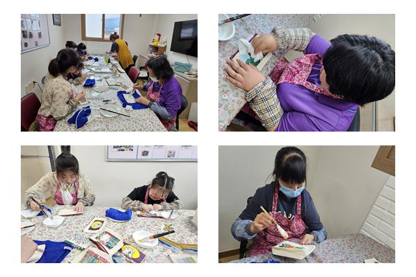 생활공예로 이용인의 그림을 활용하여 코백과 파우치 리폼을 하였습니다.