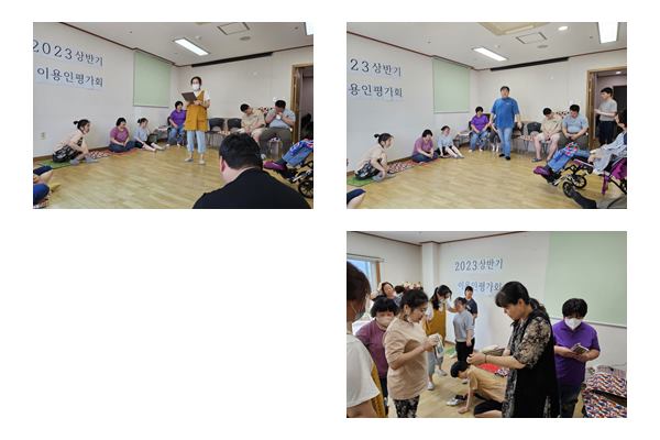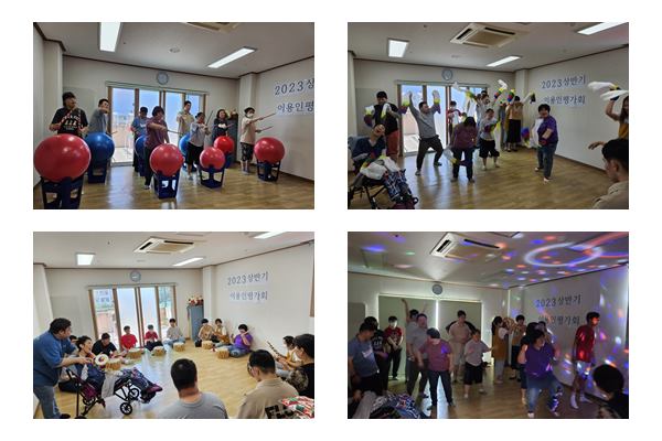 2023년 상반기 동안 활동했던 프로그램 중에 짐볼난타, 탈춤놀이, 전통놀이(아리랑 노래에 맞춰 북치기), 인지활동(하트하트 댄스) 발표회 및 평가회를 하였습니다.