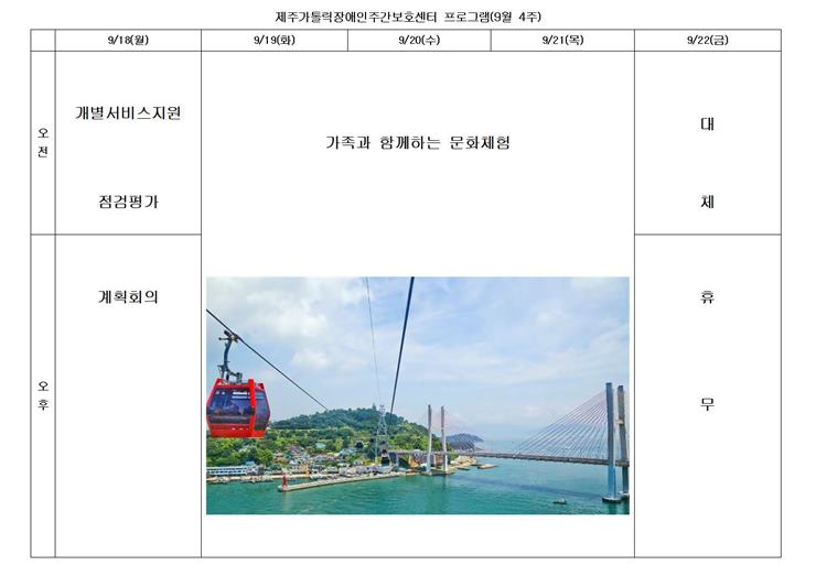 제주가톨릭장애인주간보호센터 주간일정표 9월 4주001.jpg (34809 bytes)