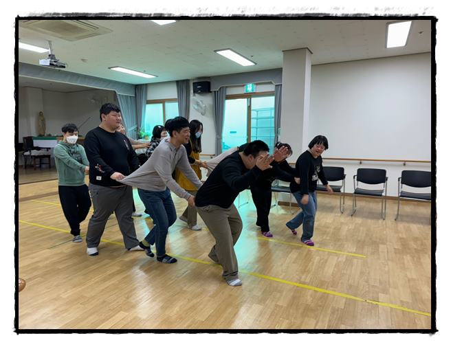 탈춤추고 꼬리잡기 놀이를 하였습니다.