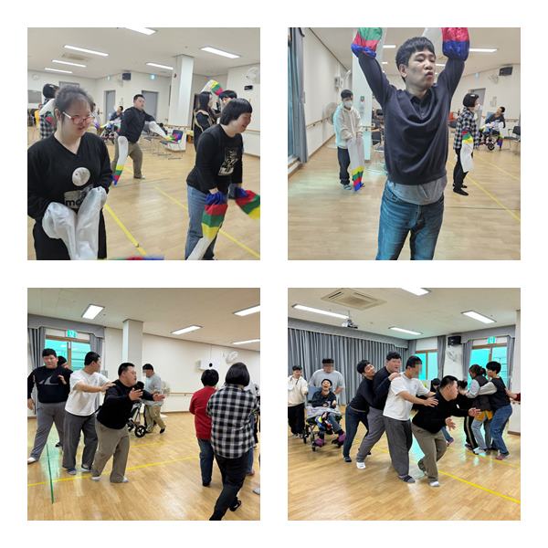 탈춤추고 꼬리잡기 놀이를 했습니다.
