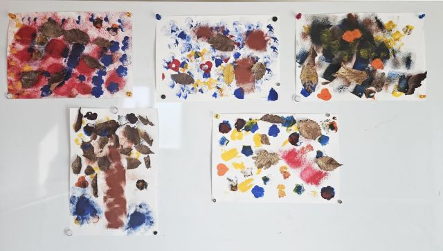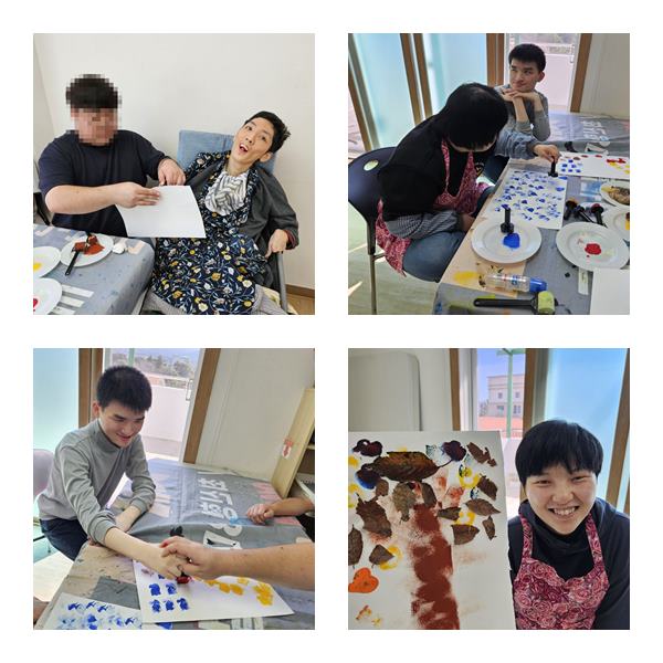 물감과 낙엽으로 가을을 표현 했습니다.