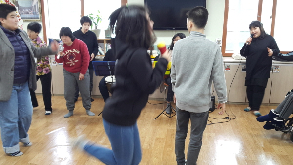 봉사활동(끌림소리)팀과 이용인 모두 어울려 신나는 시간 보냈어요.