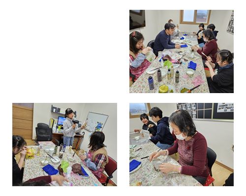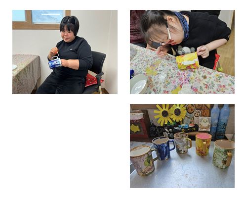 생활공예활동으로 플라스틱컵과 냅킨을 활용하여 화분을 만들었습니다.