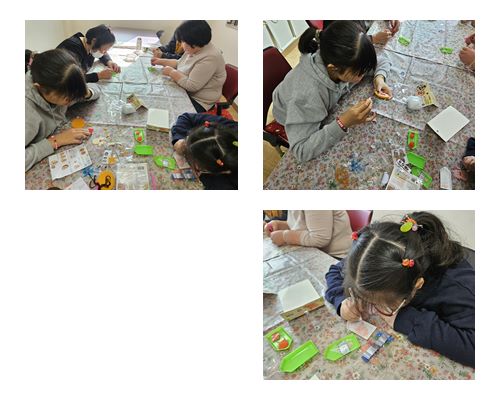 생활공예활동으로 보석십자수와 펠트로 키홀더를 만들었습니다.