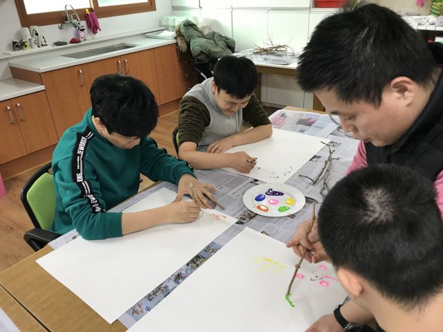 나뭇가지를 이용한 그림 그리기를 하였습니다.