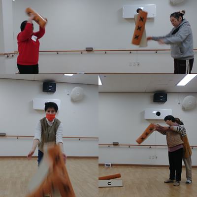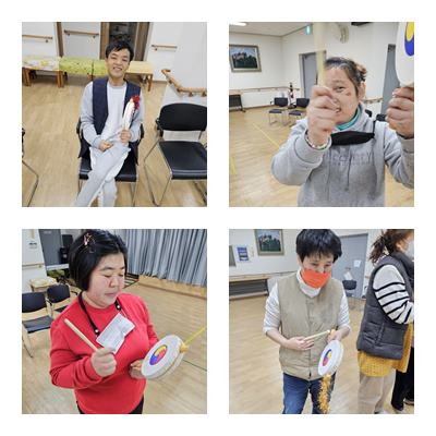 전통놀이로 소고춤과 윷놀이하였습니다.