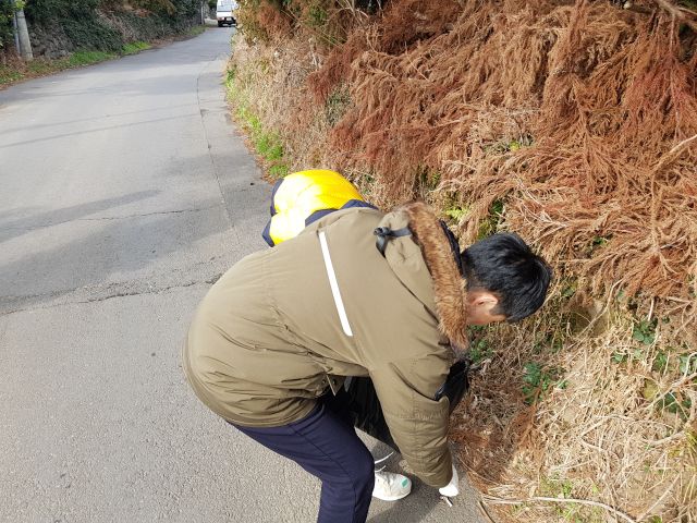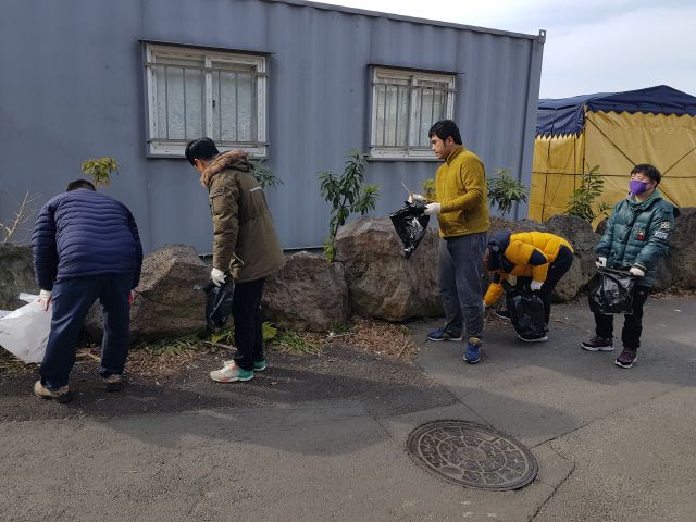 2월 8일 깨끗한 지역사회를 위해 센터 입구와 길가주변의 쓰레기 주웠습니다.