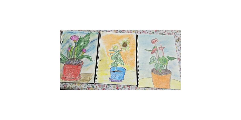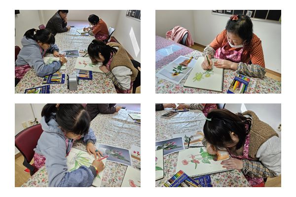 재능키움으로 색연필과 파스텔을 활용하여 꽃 화분 그리기를 하였습니다.