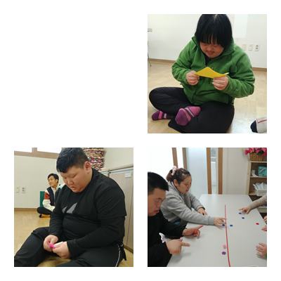 조작활동 종이접기와 알까기하였습니다.