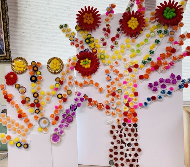 병뚜껑을 재활용하여 멋진 나무를 만들었습니다.