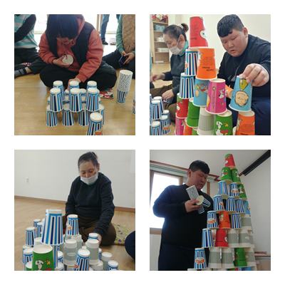 조작활동으로 컵쌓기 놀이를 통해 소근육 운동을 하였습니다.