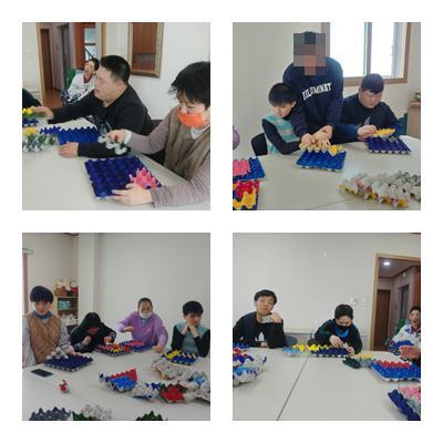 조작활동으로 계란판을 이용하여 퍼즐놀이 하였습니다.