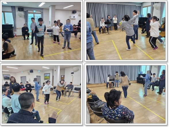 오늘 음악활동으로 끌림소리 봉사자분들과 노래를 부르며 춤을 추었습니다.