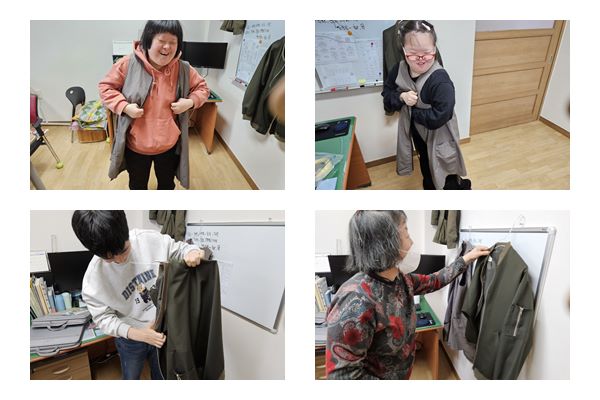 보완대체의사소통으로 옷 명칭 소리내어 말하고 각자 원하는 옷을 선택하여 ~입어요. 벗어요, 옷걸이에 걸어요 를 직접 경험하면서 문장으로 소리 내어 말하는 활동을 하였습니다.