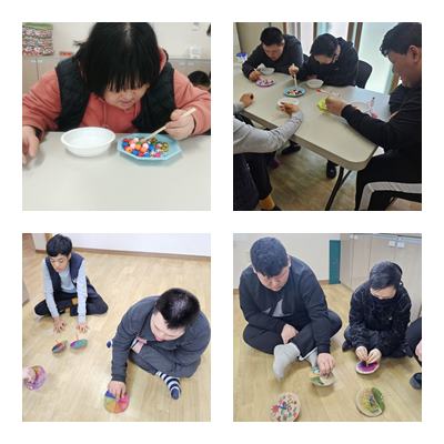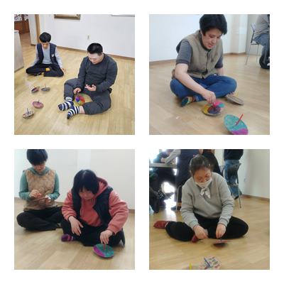 조작활동으로 젓가락놀이, 팽이놀이 하였습니다.
