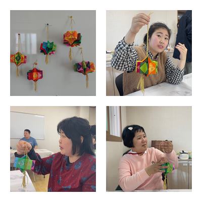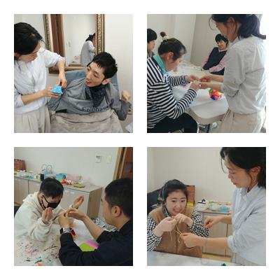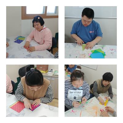놀이미술로 색종이를 접고 붙여서 모빌만들었습니다.