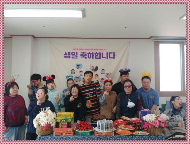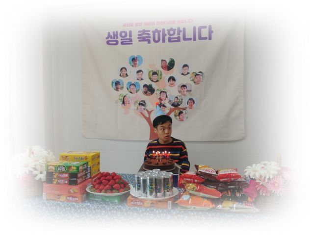 센터에서 친구들의 축하를 받으며 생일파티를 하였습니다.