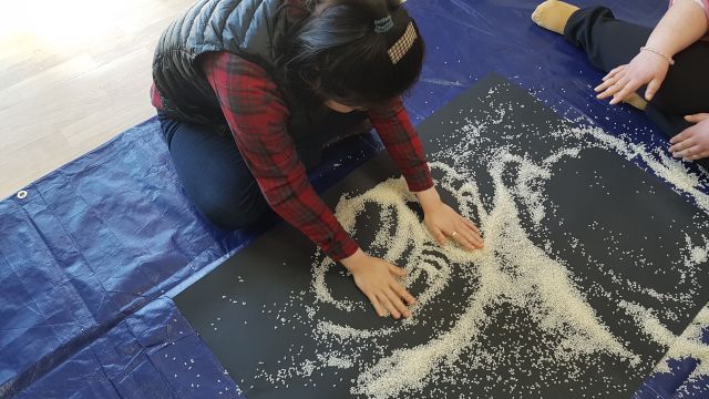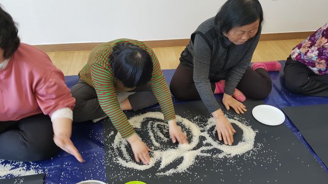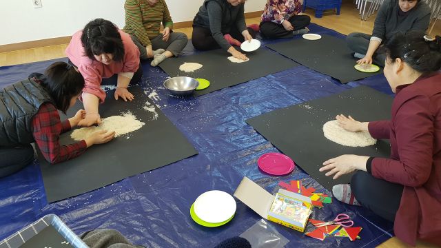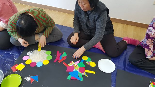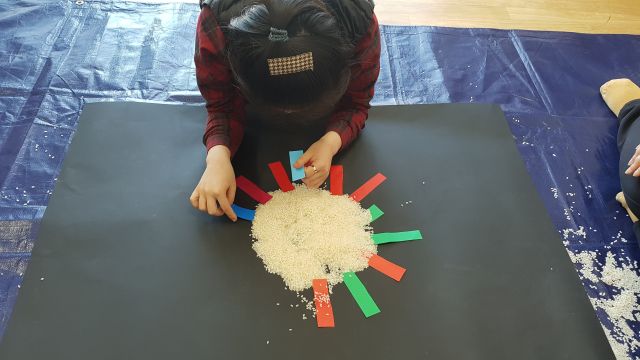 쌀과 다양한 모양의 색종이를 이용해서 멋진 작품을 만들어 보았습니다.