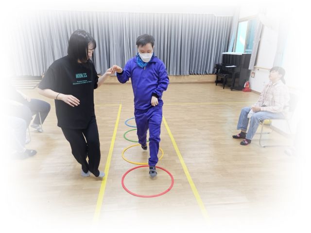 심리운동으로 링건너기 및 2인1조 줄넘기를 하였습니다.
