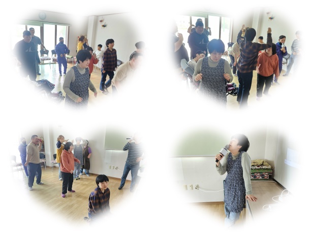 오늘 음악활동으로 트로트 노래에 맞춰 춤을 추었습니다.