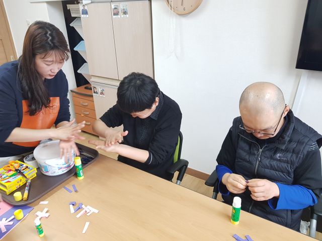 아트활동 시간에 부활바구니에 들어갈 꽃 장식을 같이 만들었습니다.