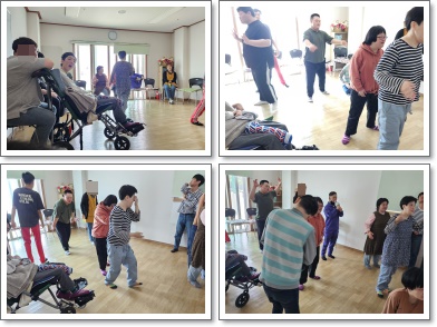 음악활동으로 노래를 부르며 춤을 추었습니다.