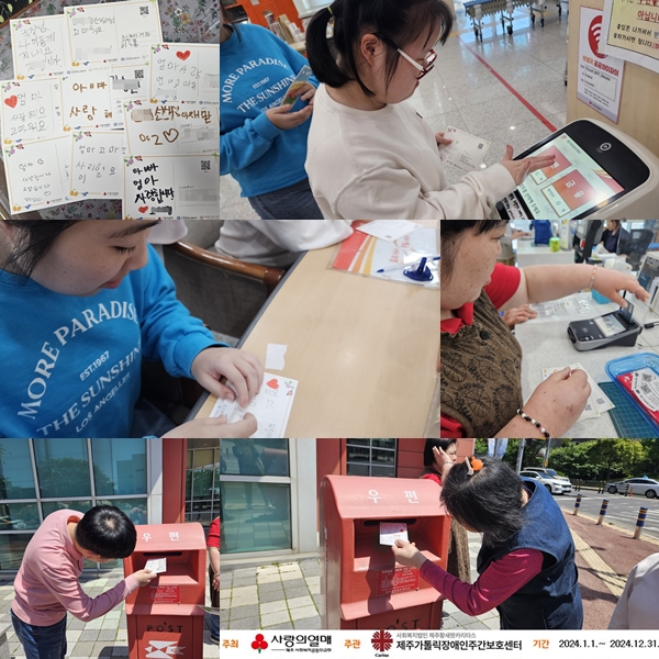 우체국 이용 활동으로 5월 가정의 달을 맞아 감사의 말을 담은 엽서를 붙였습니다.