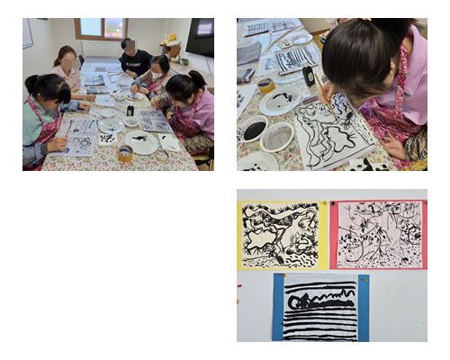 재능키움활동으로 먹과 붓을 이용하여 선, 곡선, 점, 원 등 그리기를 연습 후 화선지에 각자 그리고 싶은 나무그리기를 하였습니다.