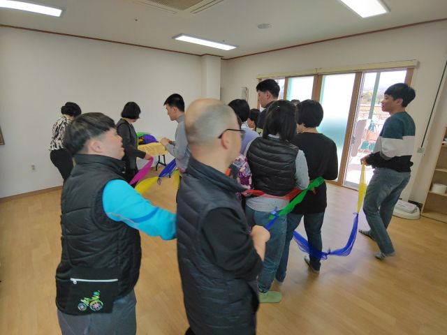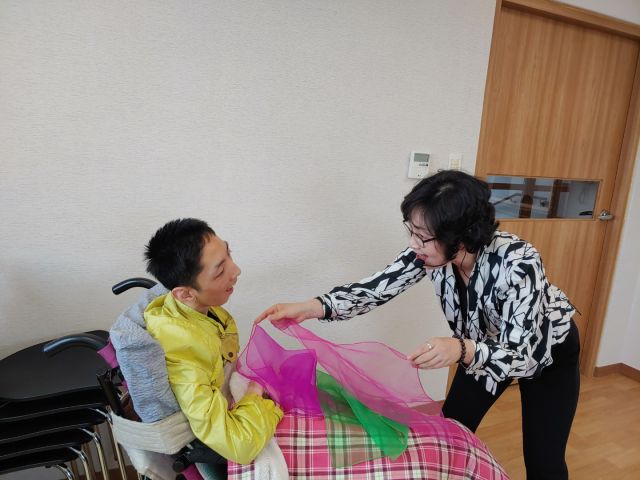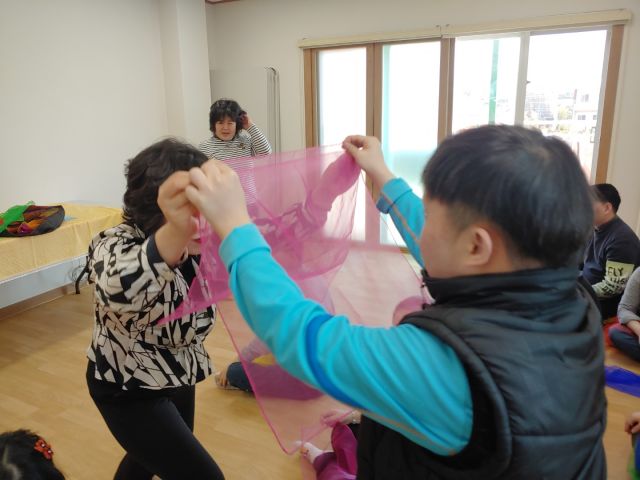 힐링 해피댄스 시간에 스카프를 이용한 댄스와 소도구 활동을 하였습니다.