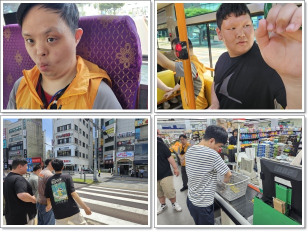 자립체험으로 버스를 타고 마트에서 간식을 구매하였습니다.