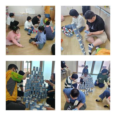 조작활동으로 컵 쌓기와 공기놀이 하였습니다.