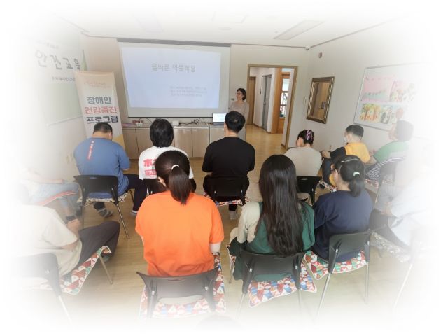 지역장애인보건의료센터에서 방문하여 올바른 약물복용에 대한 교육을 하였습니다.