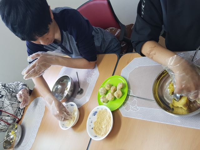 자립체험-요리활동으로 손쉽고~ 간단하고~ 맛있는 고구마 경단을 만들어 봤어요.