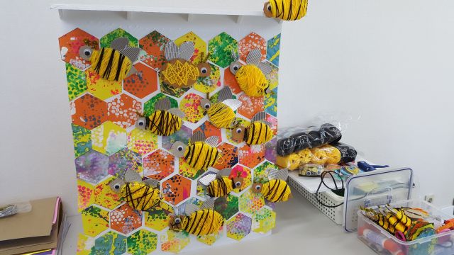 이번시간에는 꿀벌 집과 통통한 꿀벌을 만들어봤어요. 어떤가요?^^