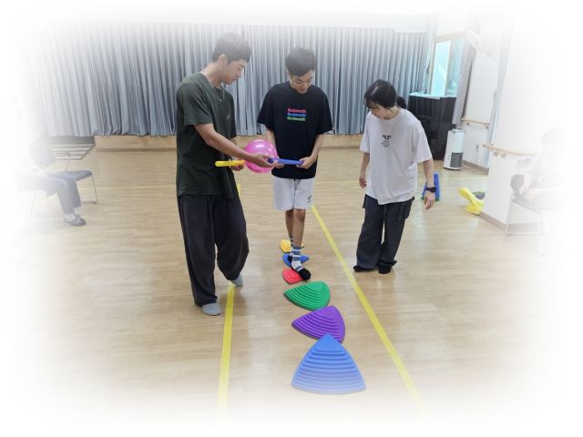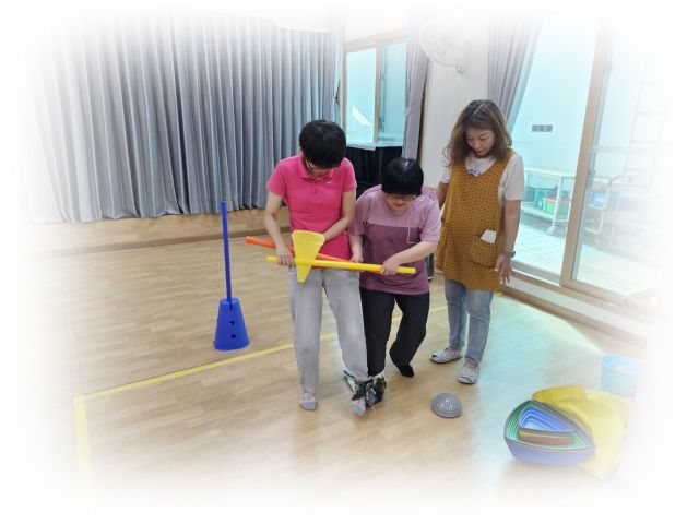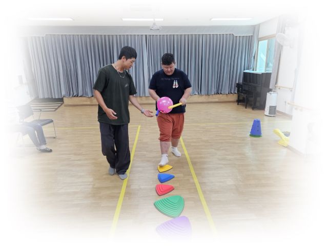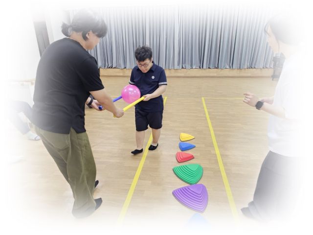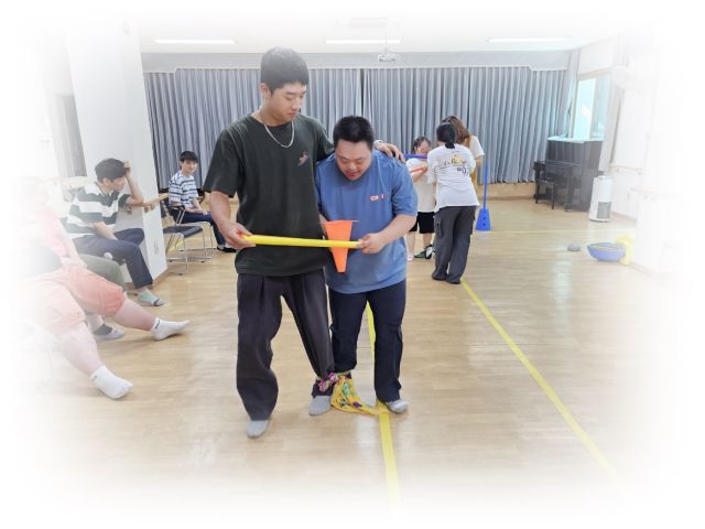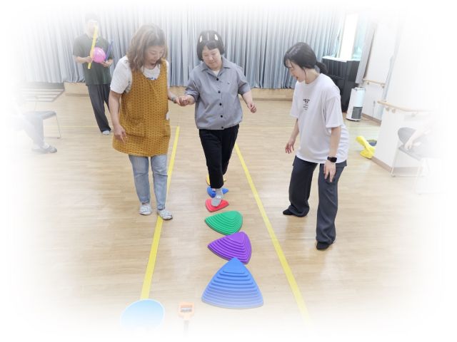 심리운동으로 징검다리 건너기 및 2인3각게임을 하였습니다.