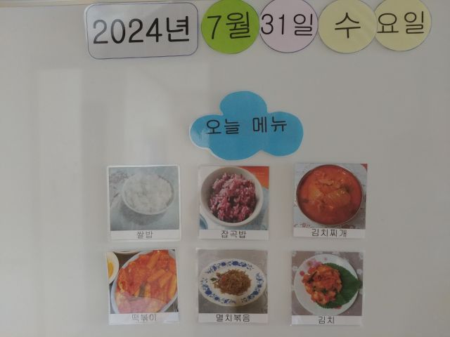 쌀밥, 잡곡밥, 김치찌개, 떡볶이, 멸치볶음, 김치