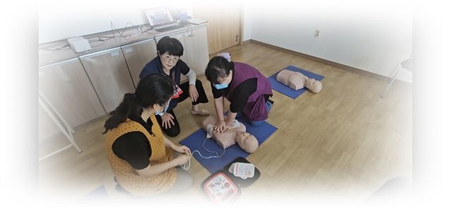 찾아가는 안전취약계층 안전교육으로 심폐소생술 및 자동심장충격기 사용방법을 익혀보았습니다.