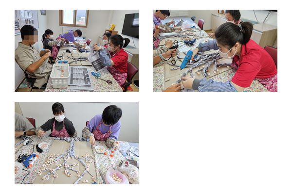 강냉이와 신문지, 폐상자를 이용하여 벚꽃 나무 꾸미기를 하였습니다.