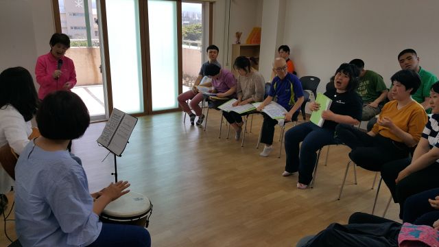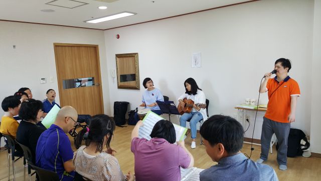 끌림소리 봉사자님들의 연주에 맞춰 신나게 노래 불러봅니다~~