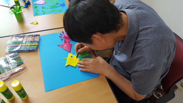 오늘은 바다속풍경 꾸며보기를 했고요. 오시현 선생님이 맛깔스럽게 읽어주시는 동화구연 시간을 가져봤어요~